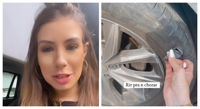 Maria Lina Deggan passou um perrengue nesta quarta-feira (29) ao estacionar o carro na rua. A influenciadora e ex de Whindersson Nunes furou um dos pneus do veículo.